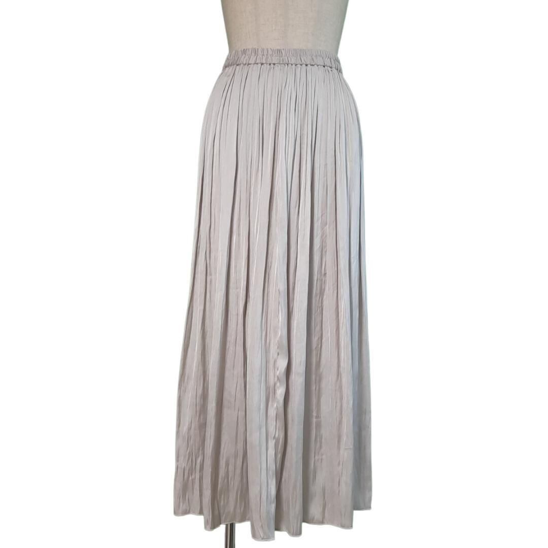 動く度に揺れるプリーツと光沢感が女性らしさを演出。