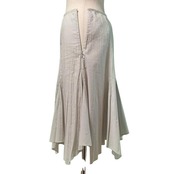 ウエストをすっきりとみせながら裾にかけてのフレアの広がりが美しいスカートは、動くたびにゆれる感じが素敵です。パーツごとに分量を入れた立体的なパターンも魅力ですイージーな着心地はありながら、カジュアルなスカートに見せないようにしています。デイリーからお出かけシーンまで幅広く活躍し、1 枚でスタイリングを華やかにしてくれます。