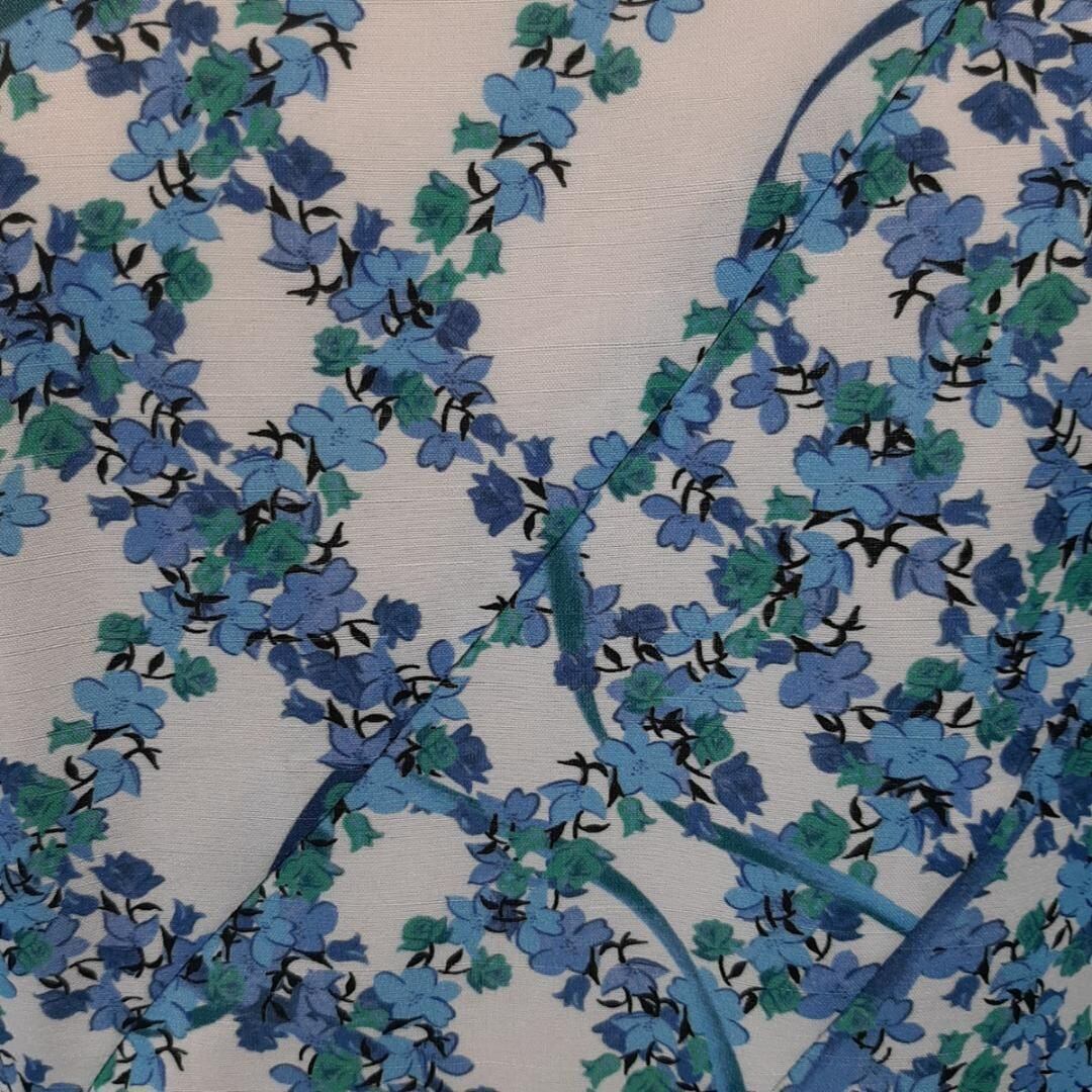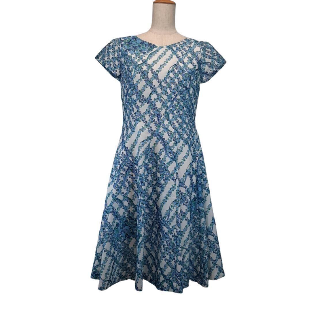 ブルーの花柄が涼しげなフラワープリントのAラインワンピース。