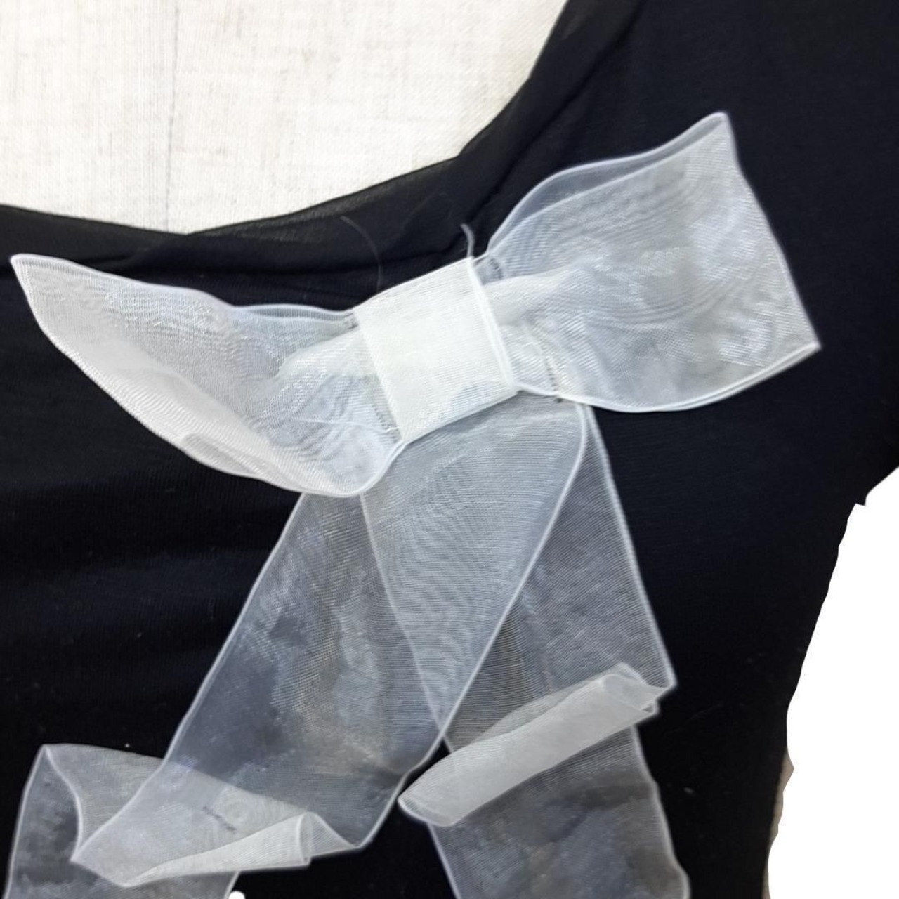 胸元のリボンが可愛らしく印象的なアイテム。