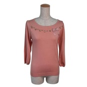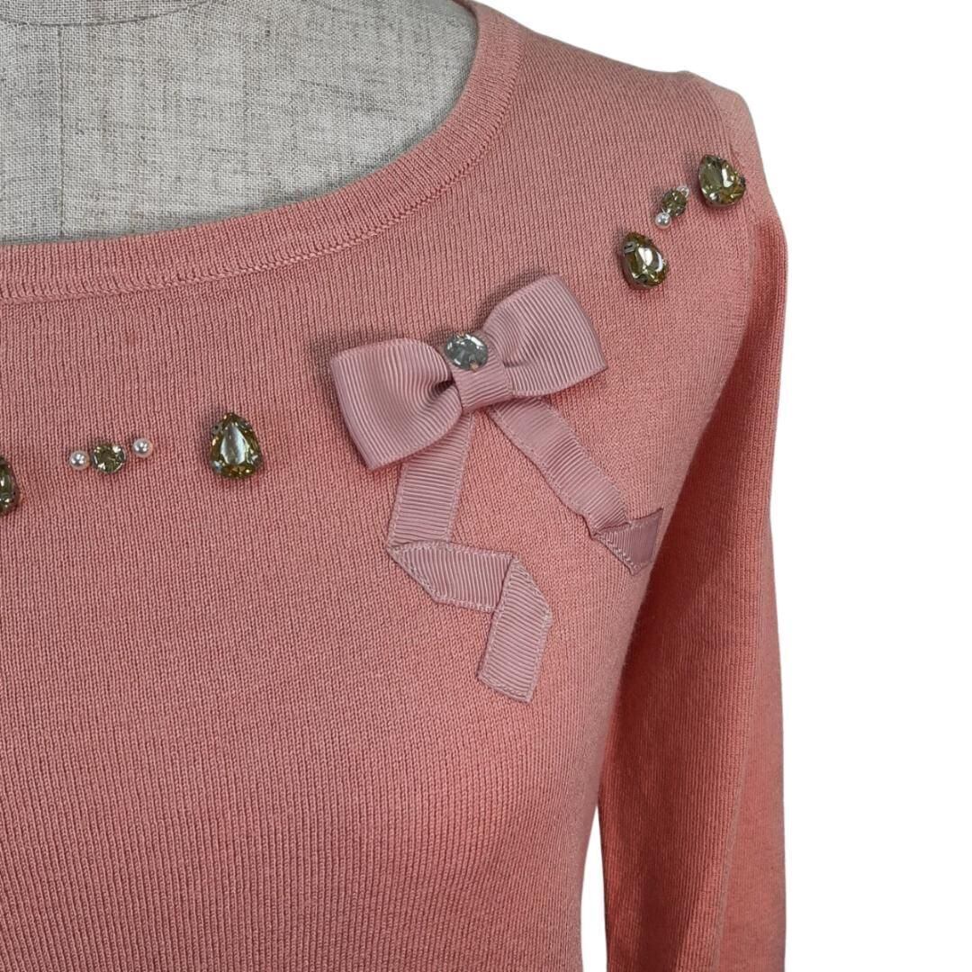 ワンポイントで、リボンがついており、キュートなニット。